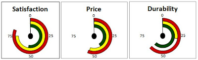 Satisfaction, Price and Durability. Each category and item is separate. Well